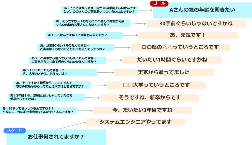 そのゴールから逆算して質問していくと下図のようなやり取りが生まれます。