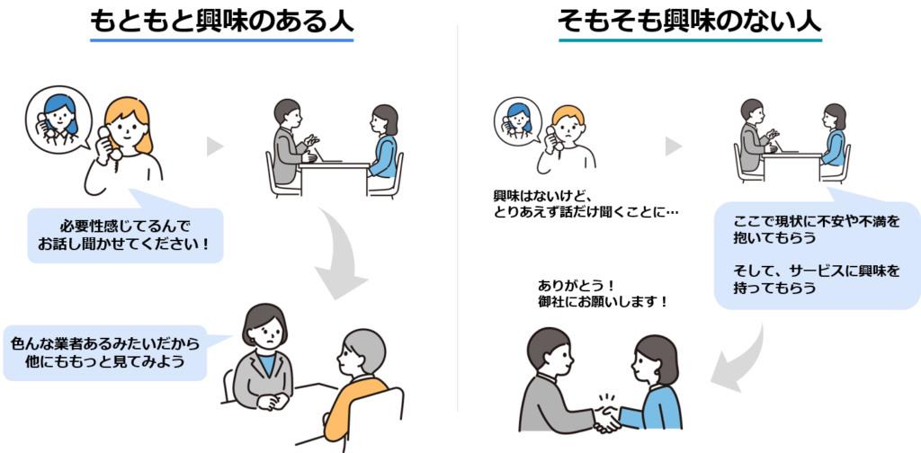 まず、興味がある人に営業するのと、興味がない人に営業するのとではどのように変わってくるのか見てみましょう。